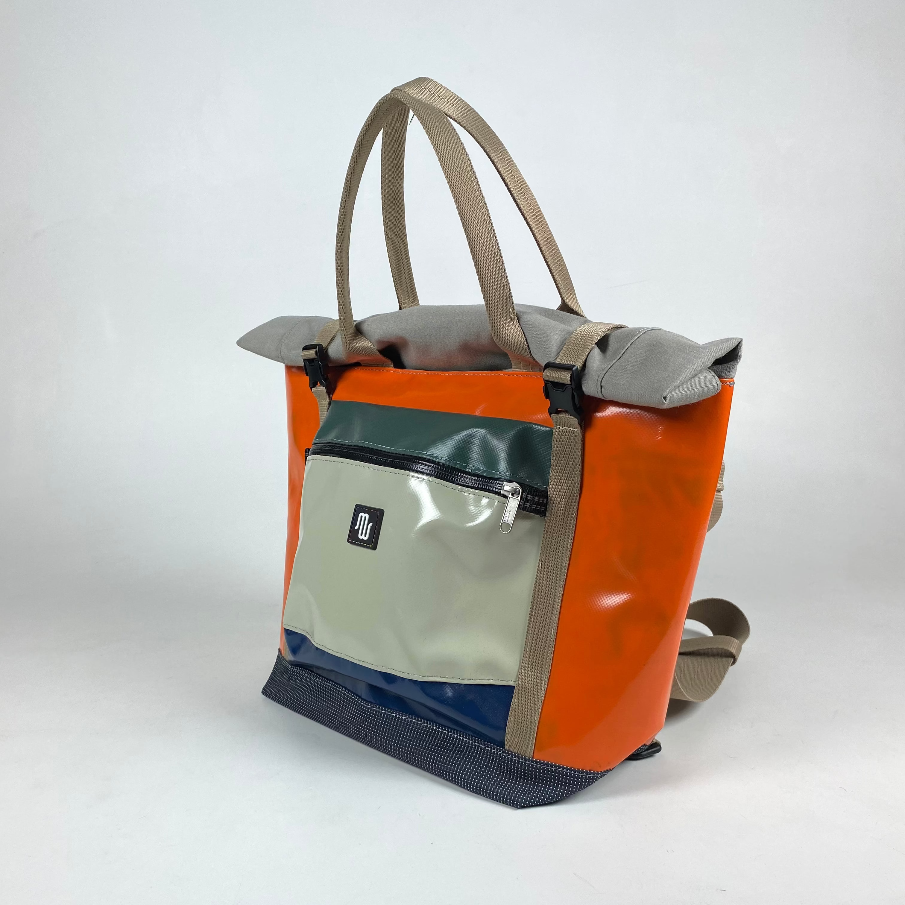 Anyagok: gyári maradék textil és újrahasznosított teherautó ponyvák/hirdetési bannerek