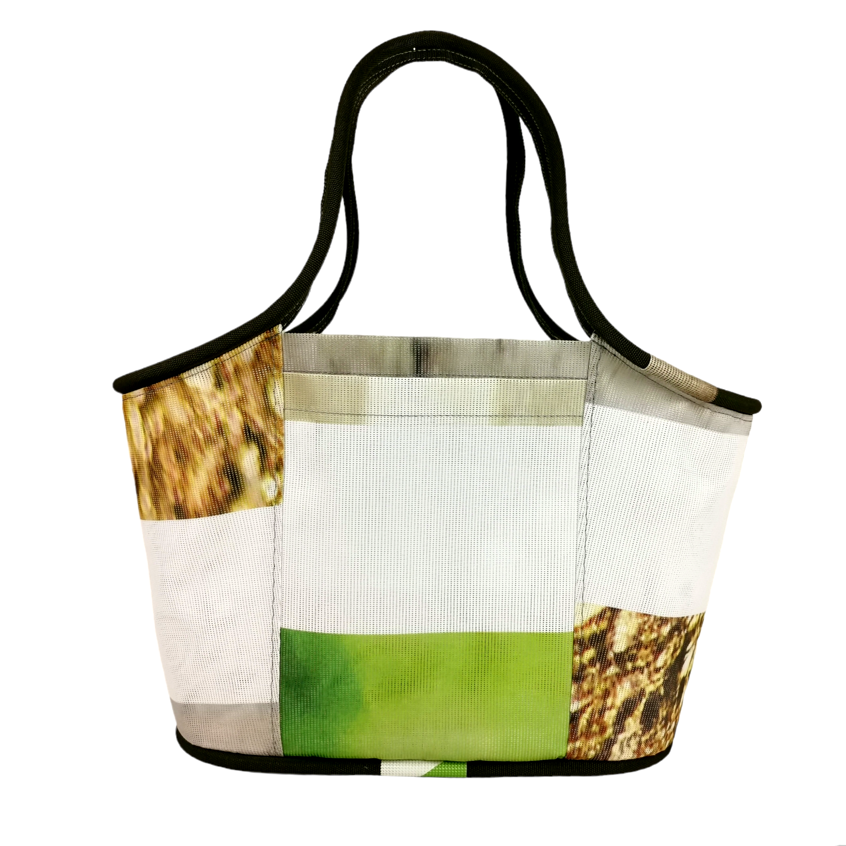 Ez a modern bevásárlókosár újrahasznosított hálóból készült.