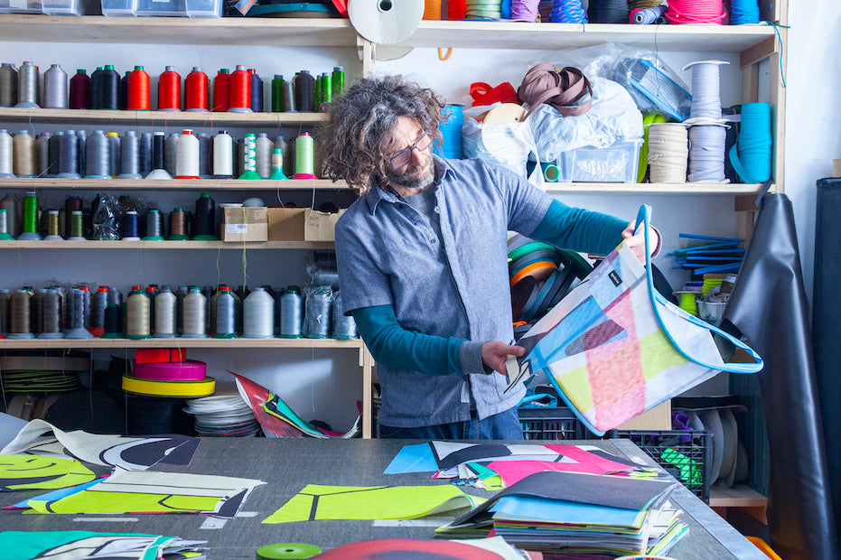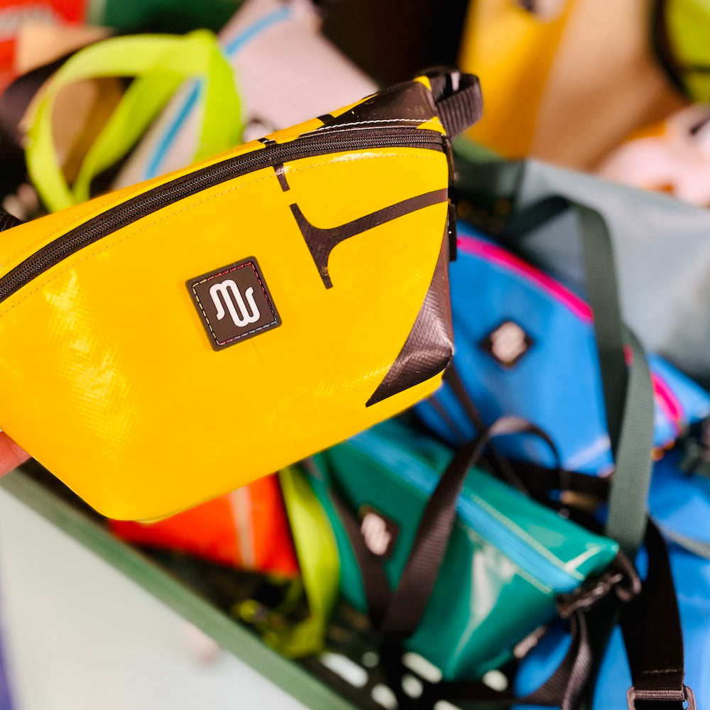 Átgondolt tervezéssel és kézműves munkával kidobásra szánt reklámponyvát és maradék anyagokat alakítunk át kézzel készített táskákká. Minden darab egyedi, akárcsak az, aki viseli őket.
